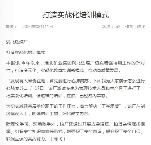 《中国煤炭报》:淮北矿业集团涡北选煤厂打造实战化培训模式