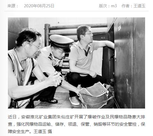 《中国煤炭报》:淮北矿业集团朱仙庄矿开展爆破作业隐患大排查