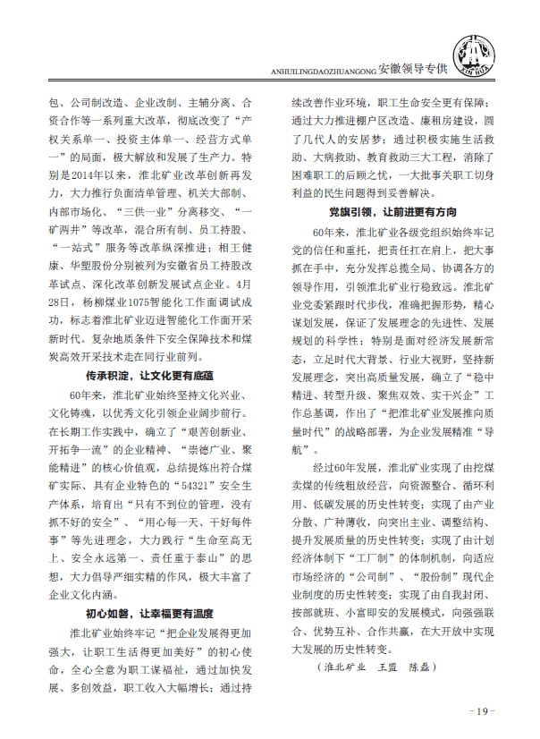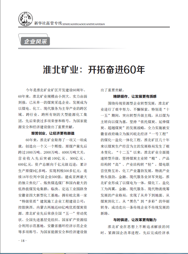 新华社《安徽领导专供》:淮北矿业开拓奋进60年