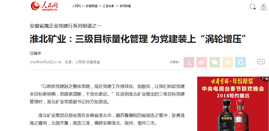 “目标管理考核细则设置科学全面,清单内容清晰明了,彻底改变了‘党建工作是务虚工作’的错误认识。”淮北矿业集团党委组织部副部长王成表示。