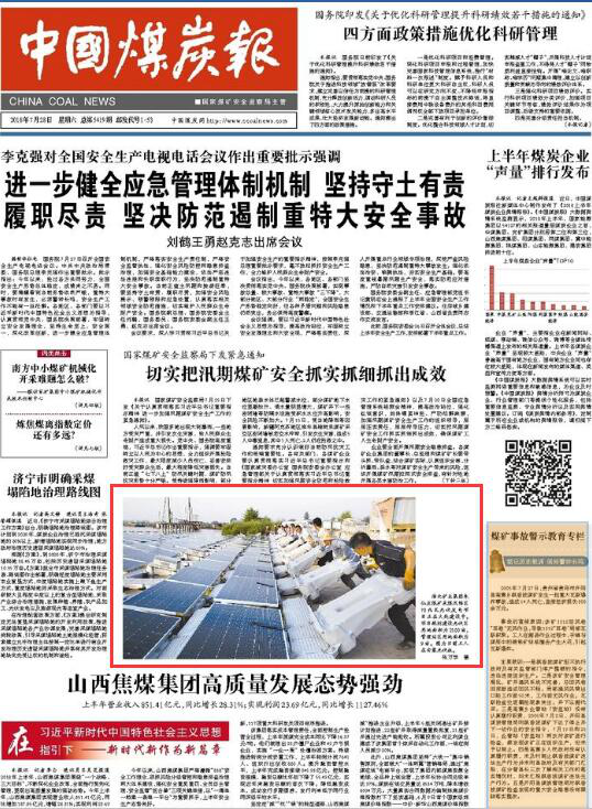 《中国煤炭报》:采煤沉陷区70兆瓦光伏发电项目建设中