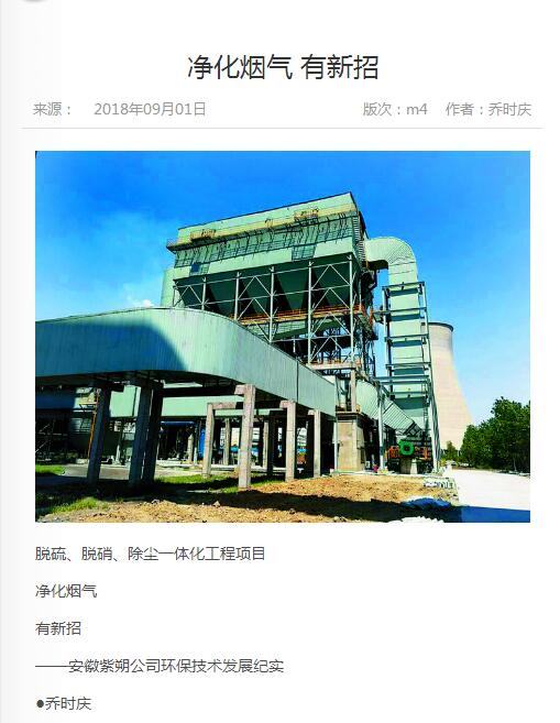 近日,紫朔公司承接的安徽临涣化工有限责任公司的环保技改工程,经过9个月的施工与调试,已达到并优于国家烟气排放标准。此次技改工程使紫朔公司全干法尘、硫、硝超低排放环保工艺得以全面运用。