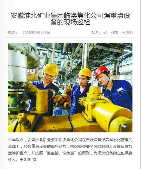 《中国煤炭报》:临涣焦化公司检修设备保安全