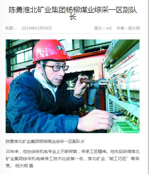 《中国煤炭报》:杨柳煤业“工匠队长”
