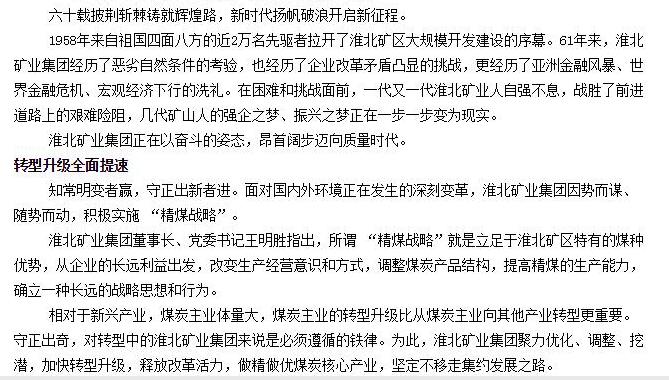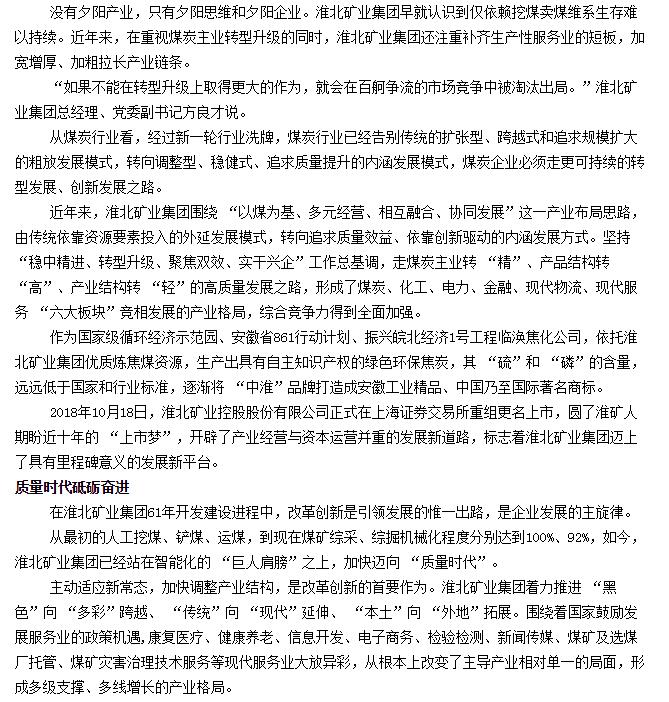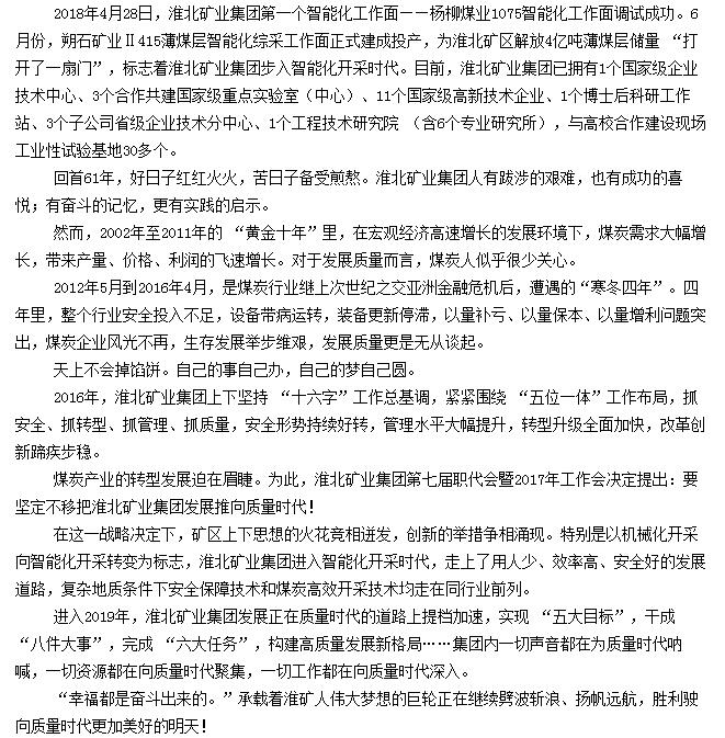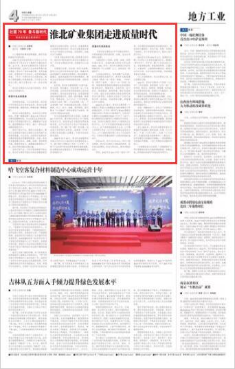 《中国工业报》:淮北矿业集团走进质量时代