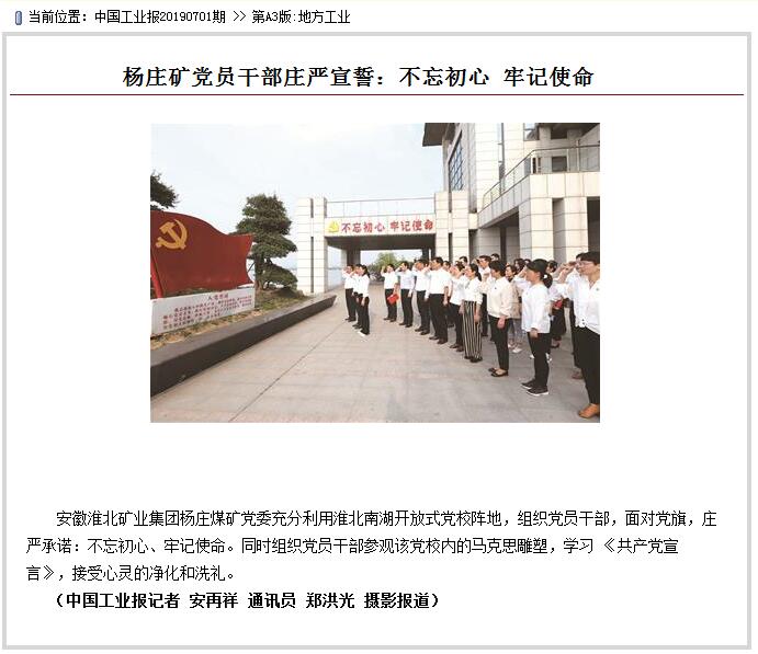 《中国工业报》:杨庄矿党员干部庄严宣誓:不忘初心 牢记使命
