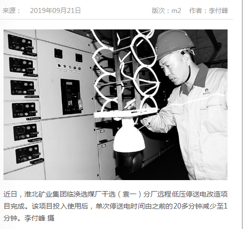 《中国煤炭报》:淮北矿业集团临涣选煤厂远程停送电智能化